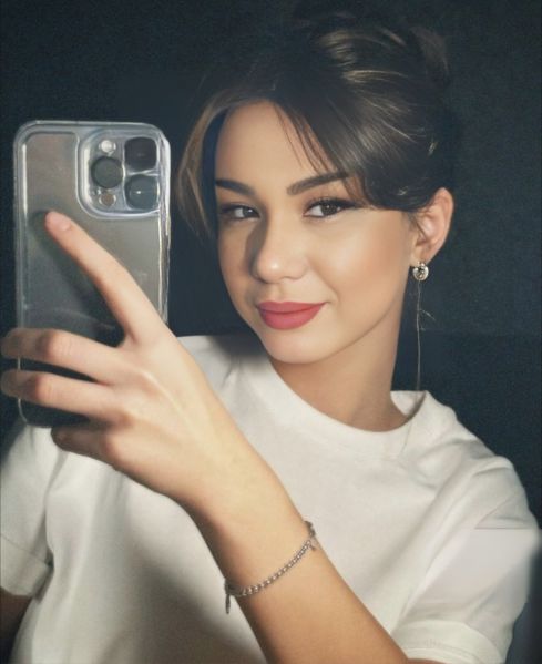 - Волосы: брюнетка